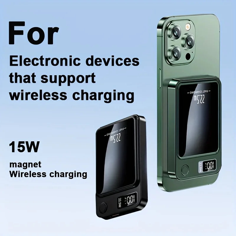 The Magsafe portable charger is equipped with a 22.5W fast charging USB-a port, a 20WType-C port and wireless charging (15Wmax), and an LED display provides real-time battery status so you can keep track of the remaining power in your charger bank.