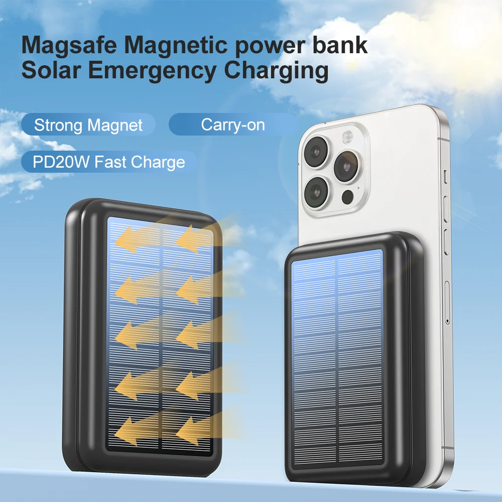 10,000mAh Solar MagSafe Power Bank- Fast Wireless Charging + USB-C