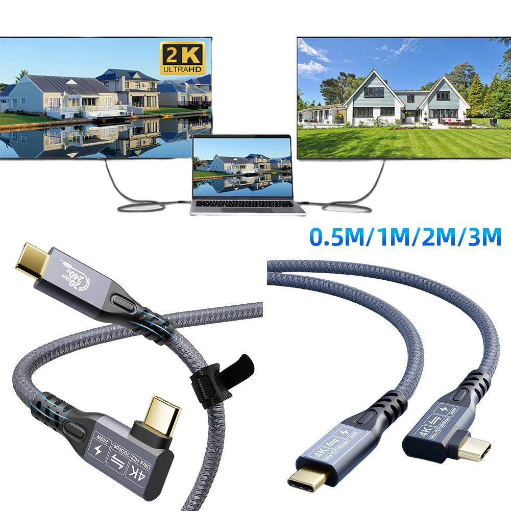 PD3.1 240W USB C To C Fast Charging Cable 20Gbps Right Angle Type C Fast Charging Cable Cord Braided Fast Charger Type C Cable Male To Male Compatible with iPhone 15 Compatible with Samsung Compatible with Macbook PC