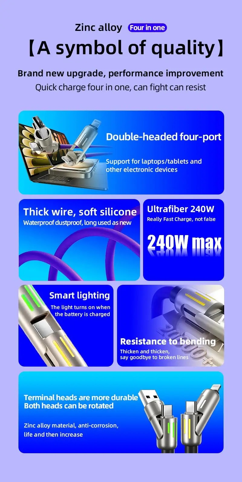 4-in-1 USB Charging Cable- 240W Fast Charge